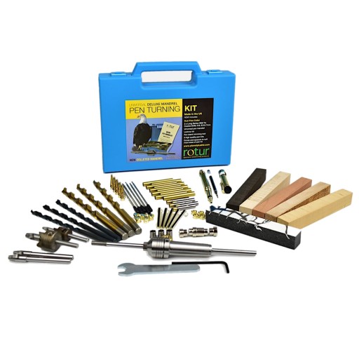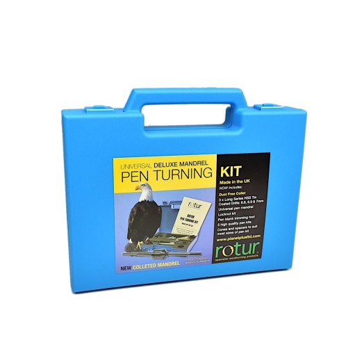 Bogato wyposażony zestaw przeznaczony do toczenia 7 i 10 mm długopisów, piór, innych przyborów piśmienniczych, jak również wielu zestawów montażowych wymagających zastosowania mandreli. Na wyposażeniu z wysokiej klasy profesjonalną mandrelą z tulejką zaciskową. Wyprodukowano w Wielkiej Brytanii.
