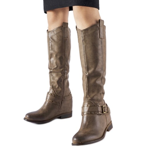 Brązowe wysokie kowbojki z ukrytym koturnem