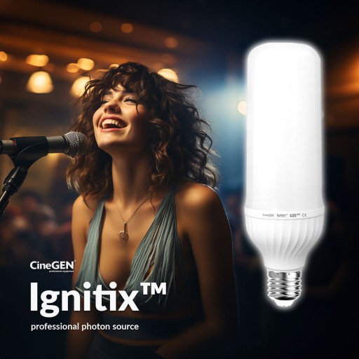 Przeznaczona głównie do oświetlania punktowego, żarówka Ignitix sprawdzi się doskonale w budowie zestawów oświetleniowych do zwiększenia mocy świetlnej. Jest idealnym wyborem do filmowania scen w pomieszczeniach o powierzchni do 100m2 oraz do doświetlania scen plenerowych.