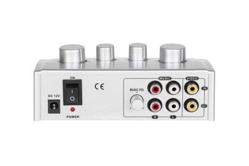 W zestawie: urządzenie, zasilacz, 2 mikrofony, 2 przewody XLR - jack 6,3 mm