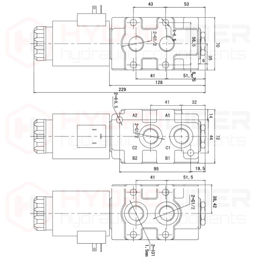 Z lewej strony schemat hydrauliczny rozdzielacza: