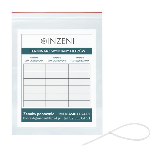 🟦 Do każdego zestawu dokładamy terminarz INZENI dzięki, któremu zapiszesz ostatnią datę wymiany filtrów