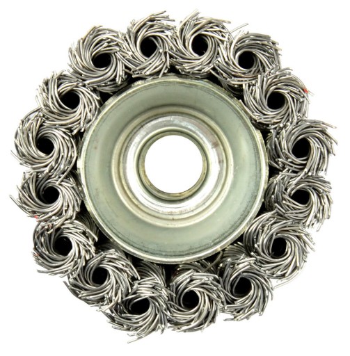 - Szczotka pleciona ma duża sztywność, dzięki czemu jest przeznaczona do obróbki zgrubnej, do agresywnego szczotkowania.