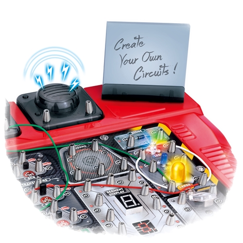 - zabawa polega na łączeniu kabelków w obwody i testowaniu jak różne połączenia oddziałują na cały układ;