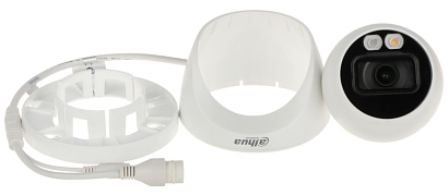 Wybrane funkcje: D-WDR - Szeroki zakres dynamiki oświetlenia 3D-DNR - Cyfrowa redukcja szumu w obrazie Gdy Smart Dual Light jest aktywny, białe światło włączy się automatycznie dopiero w momencie wykrycia obiektu w monitorowanym obszarze, co skutecznie poprawia jakość obrazu ROI - poprawianie jakości wybranych fragmentów obrazu BLC/HLC - kompensacja światła tła / silnego światła Możliwość zmiany rozdzielczości, jakości i przepustowości Obrót obrazu i odbicie lustrzane Detekcja ruchu - maks. 4 konfigurowalne strefy Strefy prywatności - maks. 4 Inteligentna Analiza Obrazu : Detekcja człowieka Obudowa: Dome - Metal + Plastik Kolor: Biały Klasa szczelności: IP67 Wandaloodporna: Zasilanie: PoE (802.3af), 12 V DC / 380 mA Pobór mocy: ≤ 5.6 W @ PoE ≤ 4.5 W @ 12 V DC Temperatura pracy : -40 °C ... 60 °C Waga: 0.33 kg Wymiary: Ø 110 x 101 mm Obsługiwane języki: polski, angielski, czeski, francuski, hiszpański, holenderski, niemiecki, rosyjski, portugalski, rumuński, turecki, ukraiński, węgierski, włoski Producent / Marka: DAHUA Gwarancja: 3 lata