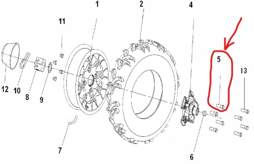 БОЛТ СТУПИЦЫ M12 ПЕРЕДНЯЯ ЧАСТЬ Linhai Hytrack 400/410S/420cc