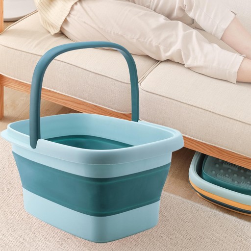 [Wielofunkcyjna składana umywalka]: Składana umywalka może nie tylko moczyć stopy, ale także czyścić dom, artykuły spożywcze, a nawet pranie. Solidny uchwyt może pomieścić wystarczającą ilość wody. Użyj go jako wiadra na wodę, wiadra do wędkowania, pojemnika na wodę do wędrówek i nie tylko.