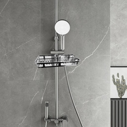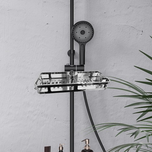 [Funkcja] Półka prysznicowa może zmienić przestrzeń w przestronny schowek, wszystkie przedmioty można ułożyć w odpowiednim miejscu. Co więcej, jego proste linie i metalowa faktura będą pasować do większości barów.