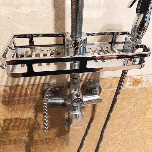 [Bez wiertła] Zainstaluj tę półkę na poręcz prysznica, nie trzeba wiercić otworu w ścianie. nadaje się tylko do rur prysznicowych o średnicy 25 mm)
