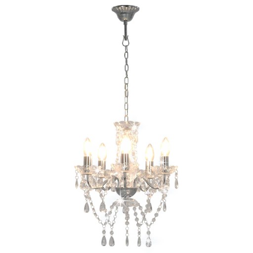 Żyrandol z kryształowymi koralikami, srebrny, 5 żarówek E14
