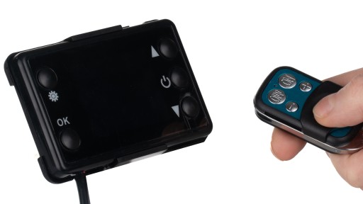 Nagrzewnica posiada pilot, który umożliwia zdalną obsługę urządzenia
