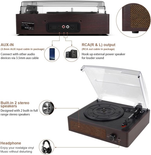 3-скоростной проигрыватель MASOCO с Bluetooth AUX RCA