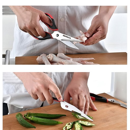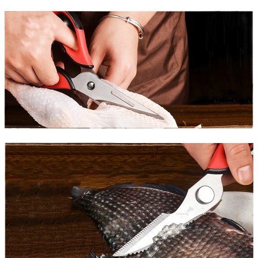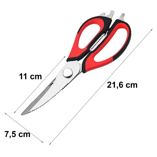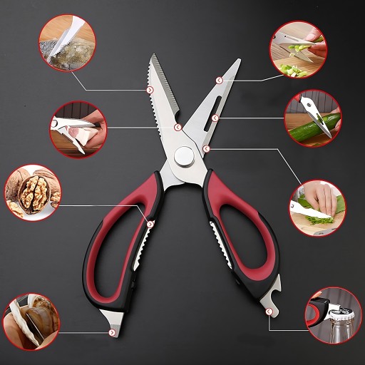 Nożyczki wielofunkcyjne to doskonałe narzędzie zarówno dla amatorów jak i profesjonalistów gotowania. Sprawdzą się w twoim domu, dzięki swojej funkcjonalności. Posiadają antypoślizgowe uchwyty, dzięki czemu nie wypadną ci z dłoni podczas krojenia. Narzędzie może służyć do krojenia mięsa, owoców, warzyw, otwierania butelek lub puszek, skrobania ryby, rozłupywania orzechów.