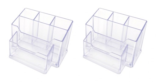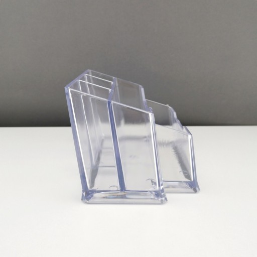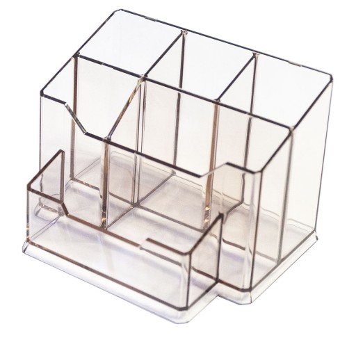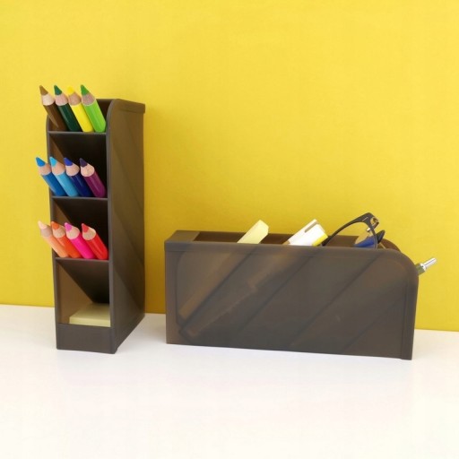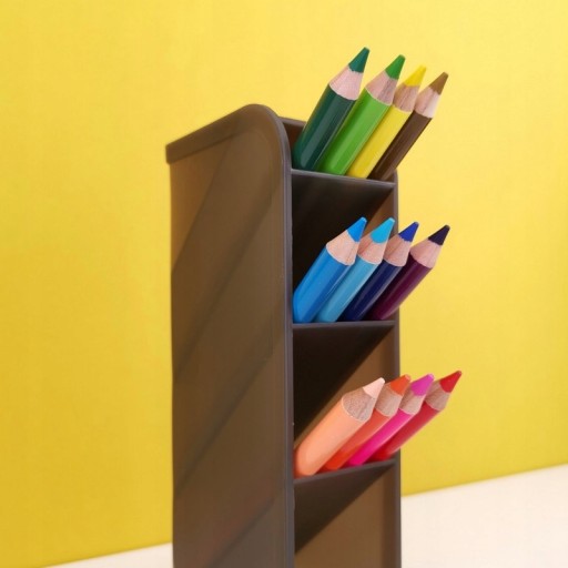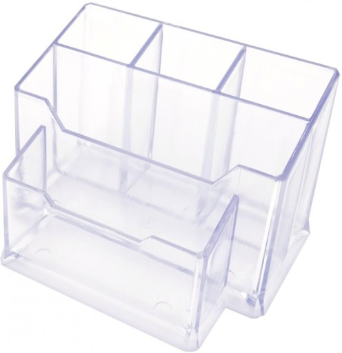 - Posiada 4 przegródki na długopisy/nożyczki, etc.,1 przegrode na karteczki oraz 1 przegrodę na wizytówk.