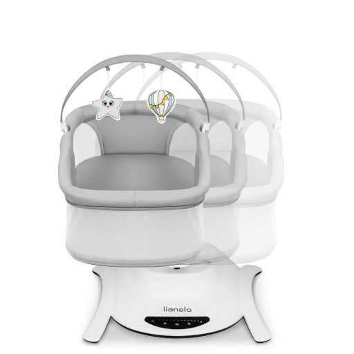 O wszystkich ustawieniach produktu zdecydujesz z poziomu dotykowego panelu sterowania lub za pomocą pilota. Dzięki cichej pracy silnika, możesz mieć pewność, że nie wybudzi dziecka, kiedy utnie sobie słodką drzemkę. Model ten odtwarza 12 spokojnych melodii oraz pałąk z zabawkami - 3 w funkcji bujaczka, 2 w funkcji łóżeczka. Akcesoria dodatkowo ćwiczą koncentrację dziecka, dostarczają mu nowych bodźców i zachęcają do wyciągania rączek. Bujaczek Lionelo Bella Set 2w1 jest lekki, bez problemu przeniesiesz go i ustawisz w dowolnym miejscu. Podłogę przed zarysowaniem ochronią podkładki antypoślizgowe. W przypadku zabrudzeń ramę możesz przetrzeć mokrą szmatką, a poszycie i pokrowiec materaca prać ręcznie.