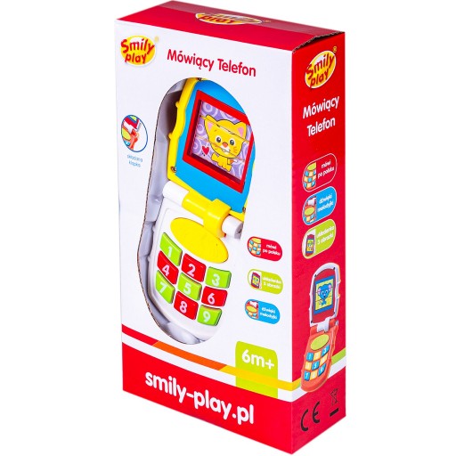 - Mówiący telefon ma składana klapkę, wydaje dźwięki i gra melodyjki, a ponadto ma 3 układanki obrazkowe na wyświetlaczu.