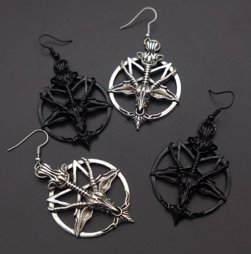 Kolczyki Wiszące Pentagram, Głowa Kozy, kolor Srebrny, 2 sztuki