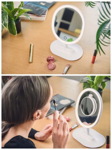 KOMPAKTOWE LUSTERKO DO MAKIJAŻU OKRĄGŁE STOJĄCE LED ŚWIECI I PRZYBLIŻA 5x