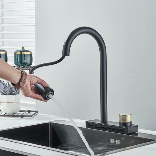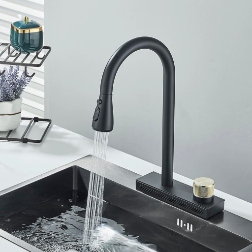 Смеситель для кухни Caterina с водопадом и гибким изливом Черный