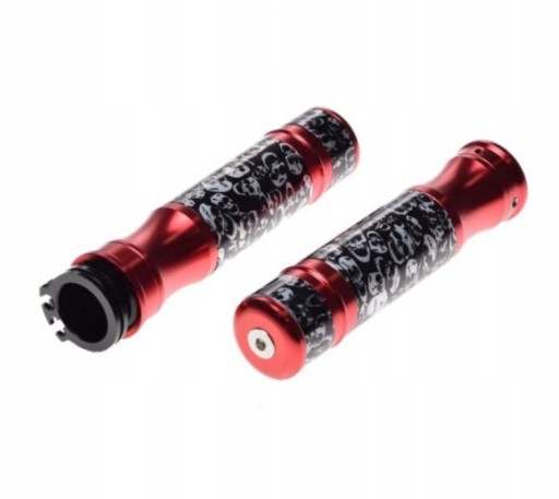 UNIWERSALNE MANETKI LEOSHI RACING CZERWONE Z CZASZKAMI KOMPLET LEWA + PRAWA