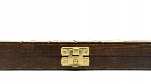 Szachownica malowana ręcznie oraz ręcznie wypalana. Całość zabezpieczona trwałym lakierem, zdobiona okuciem.