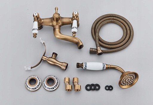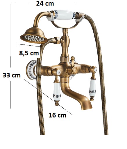 Bateria wannowa jest przystosowana do montażu naściennego Dzięki specjalnej powłoce baterie są trwałe i łatwe w utrzymaniu czystości. Baterie jak i wszystkie dodatkowe elementy są solidne i będą służyć przez wiele lat. Model wannowy wyposażony jest w słuchawkę z rozszerzonym strumieniem wody. Wąż baterii jest elastyczny w antycznym wykończeniu.