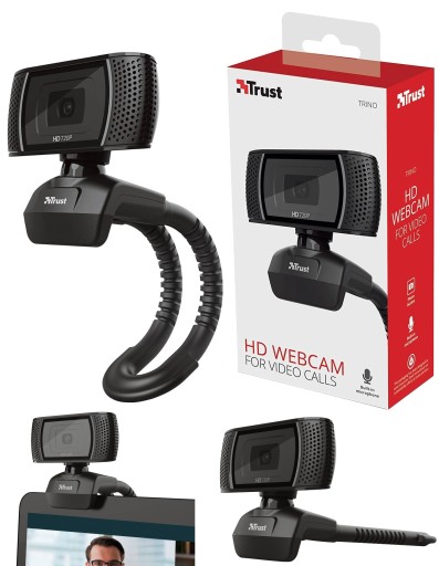 Trust Trino HD Video Webcam. Megapiksele: 8 MP, Obsługiwane tryby wideo: 720p. Standardowe rozwiązania komunikacyjne: USB, Kolor produktu: Czarny, Mountinga type: Spinacz