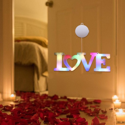 Romantyczny znak LED Light Walentynki z przyssawką Wedding Decor LOVE Multicolor