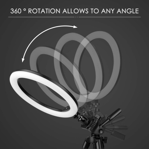 3 tryby i 10 poziomów jasnoci wiato piercieniowe ma rednic 26 cm i moe tworzy trzy tryby owietlenia biay ciepy biay i ciepy óty. Temperatura barwowa 3000 K5600 K 10 poziomów jasnoci od 10 do 100 dla uzyskania wystarczajcego wiata. Sprawia e podczas transmisji na ywo i selfie staj si janiejsze i eliminuje przeszkadzajce cienie na twarzy. Obsuga Bluetooth i uchwyt teleskopowy Ring Light jest wyposaony w pilot Bluetooth do telefonów Apple i Android. Zasig pilota zdalnego sterowania moe wynosi do 10 m co uatwia robienie zdj lub filmów. Klipsy na telefon mog mie do 8 cm szerokoci i s kompatybilne z prawie kadym smartfonem z lub bez etui. Stabilny statyw i gowica 360Wysoka stabilno dugo zoenia wynosi tylko 41 cm bardzo wygodna w noszeniu. Mona go wyduy od 41 cm do 135 cm w celu uzyskania doskonaych rezultatów nagrywania. Gowic kulow mona obraca o 360 a za pomoc gowicy statywu mona lepiej wybra kt. Zasilanie USB i uniwersalne zasilanie Nasza lampa piercieniowa jest zasilana przez USB i moe by podczona do portów USB przenonych zasilaczy laptopów komputerów itd. Ring Light to idealne wyposaenie do rysunków masek filmów YouTube owietlenia wewntrznego fotografii zewntrznej fotografii reklamowej czytania i wielu innych. Lista zestawie 1 x 10 cali lampa piercieniowa 1 x statyw 1 x uchwyt na telefon komórkowy z wem 1 x pilot Bluetooth 1 x metalowa gowica kulkowa 1 x instrukcja obsugi moe nie by dostpna w jzyku polskim. W razie pytań prosimy o a my zawsze jestemy do Państwa dyspozycji.