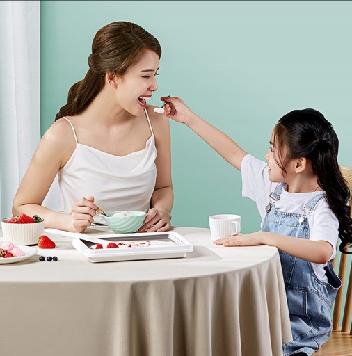 6.Szybki, łatwy i bezpieczny. Ta maszyna do lodów jest wystarczająco łatwa w użyciu, że nawet małe dzieci mogą to zrobić. Nie potrzebujesz prądu, po prostu wlejesz mieszane składniki, takie jak orzechy, owoce, na płaską powierzchnię szybko zamrażania, poczekaj kilka sekund, aż wszystkie składniki się zamrożone i wymieszaj 2 spatulas.