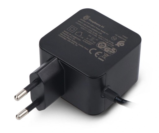 Oficjalny zasilacz Raspberry Pi z wejściem USB typu C i technologią Power Delivery (PD) o mocy 27 W . Może dostarczyć prąd o maksymalnej wydajności 5 A przy napięciu 5 V , co umożliwia zasilanie Raspberry Pi 5 oraz dodatkowych, bardziej wymagających akcesoriów. Ponadto zasilacz Raspberry Pi PD oferuje3 A przy 9 V, 2,25 A przy 12 V oraz 1,8 A przy 15 V dla urządzeń wspierających technologię Power Delivery, co sprawia, że jest uniwersalny i nadaje się do różnorodnych zastosowań, nie tylko dla Raspberry Pi. Zasilacz jest dostępny w kolorze czarnym i posiada wtyczkę EU.