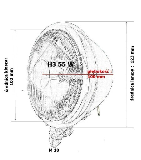 - Średnica klosza to 102 mm, średnica całkowita lampy to 123 mm, a głębokość to zaledwie 100 mm - wymiar lampy nie powinien sprawiać trudności z montażem w przypadku posiadania szyby czołowej.