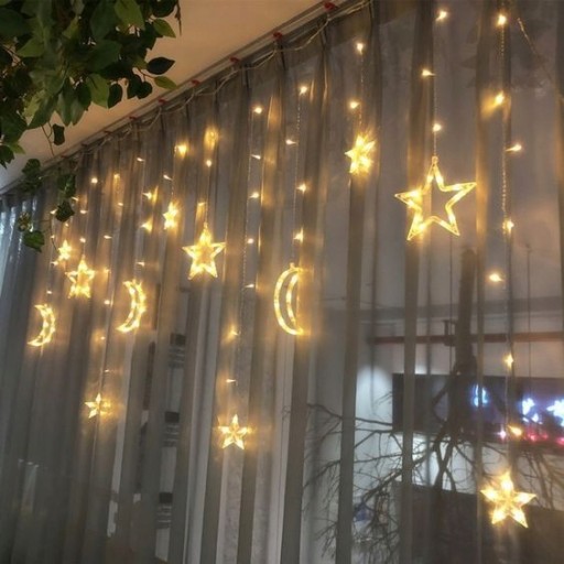KURTYNA ŚWIETLNA LED, GIRLANDA, ŁAŃCUCH ŚWIETLNY PROSTY - GWIAZDY KSIĘŻYCE 4M