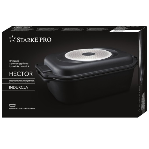 Brytfanna aluminiowa Starke Pro Hector 2w1 7,5 l pozwala szybciej przygotować efektowne dania (szybko się nagrzewa, a pokrywa zamyka obieg powietrza). Powłoka nieprzywierająca GREBLON C3 ma właściwości nieprzywierające, łato się myje i umożliwia ograniczenie tłuszczu do smażenia i pieczenia. Stworzyła ją niemiecka firma WEILBURGER. To dzięki niej może wytrzymać do 8000 cykli ścierania (standardowy wynik na rynku naczyń non-stick to 2000!). Dania będą z nią zdrowsze. Pokrywka pełni też funkcję patelni grillowej, na której przyrządzisz świetne mięsa, warzywa i ryby. Wygodne uchwyty dobrze trzymają się w dłoni, więc bezpiecznie wyjmiesz pieczeń z piekarnika. Wykonanie z solidnego i grubego aluminium (odlew) to gwarancja wieloletniego używania. Poleca ją Piotr Kucharski, który dokładnie przetestował, co potrafi brytfanna z pokrywą do grillowania Hector. W ogólnym sprawdzianie jakości produkt uzyskał 5/6 gwiazdek.