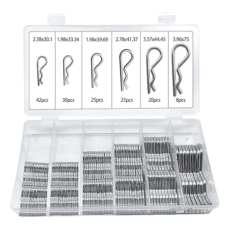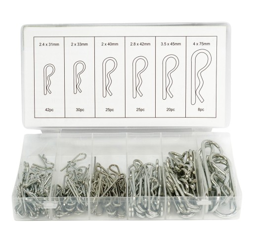 Zawleczki sprężynowe posegregowane są – w zależności od rozmiaru – w plastikowym sortowniku.