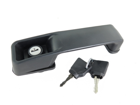 Klamka drzwi stosowana w koparko-ładowarkach JCB 3CX / 4CX, 2 kluczyki w komplecie.