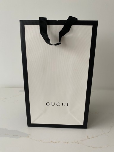 Oryginalna piękna torba papierowa/ prezentowa marki GUCCI w kolorze kremowym.
