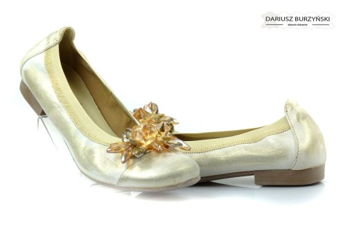 35 BALERINY 173GKR BEŻOWOZŁOTE SKÓRZANE GUMKĄ SKÓRA
