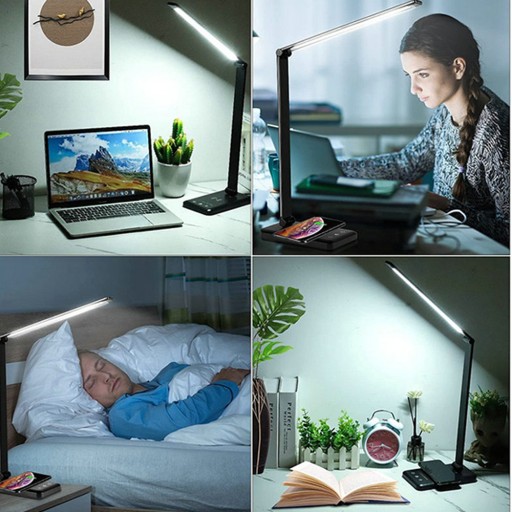 ✔️ Ta lampa biurkowa ma szybkie bezprzewodowe ładowanie 10 W i funkcję ładowania USB 5 V/2 A. Możesz ładować swój smartfon podczas pracy, nauki i relaksu, co jest bardzo wygodne.