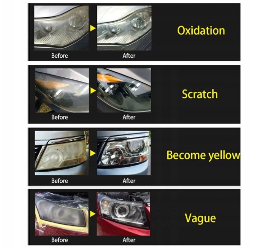 Może skutecznie wyeliminować zadrapania reflektor samochodowy i rozwiązać żółknięcie, rozmycie, utlenianie i inne problemy.