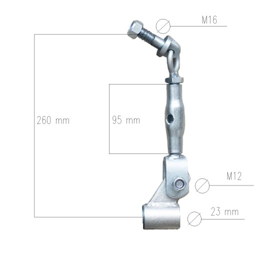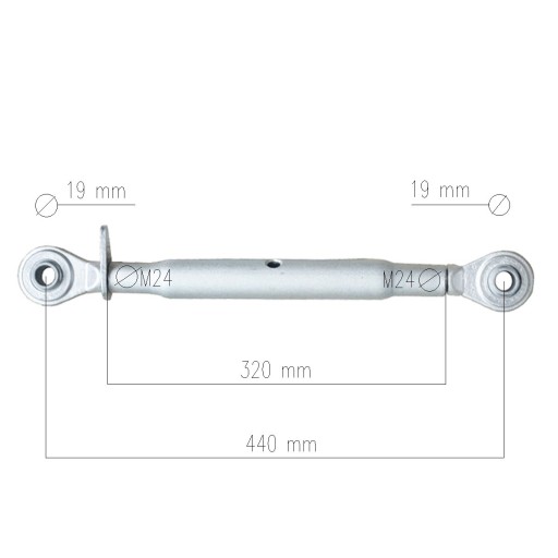 - długość śruby rzymskiej: 320 mm (środkowy element), minimalna 440 mm od środka do środka otworów na sworznie przy maksymalnie skręconej śrubie,