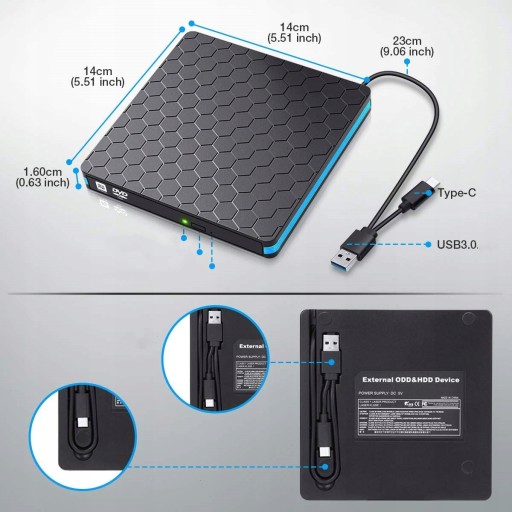 Zewnętrzny napęd DVD jest idealnym towarzyszem dla MacBooka / MacBooka Pro i innych komputerów / laptopów z interfejsem USB lub Type. Niezależnie od tego, czy potrzebujesz interfejsu USB, czy interfejsu typu C, może spełnić Twoje potrzeby. Odzież robocza 2 w 1 znacznie poprawia komfort.