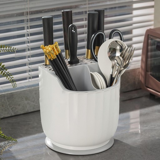 Держатель для кухонной утвари, столовые приборы, сушилка, место для хранения, кастрюля для посуды, белый нож.