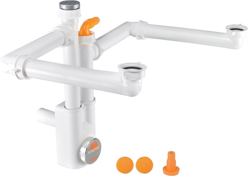 Zawiera: 3 x króćce (1 - proste, 2 - kątowe) - do pralki / zmywarki lub elastyczna rura przelewowa zlewu. Plus 2 x zaślepki.
