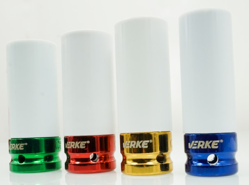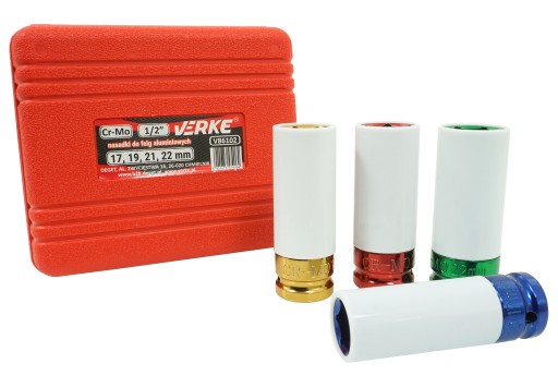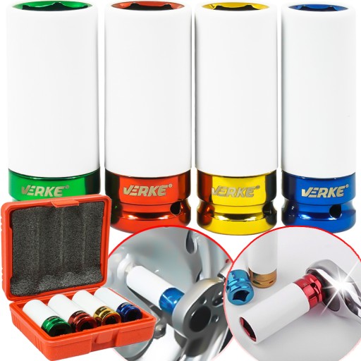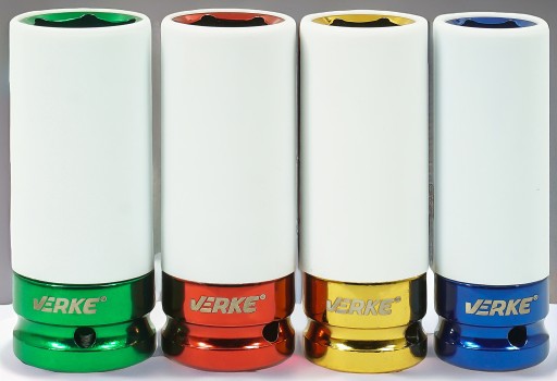 Nasadki udarowe marki VERKE wykonane ze stali chromowo-molibdenowej do felg aluminiowych.
