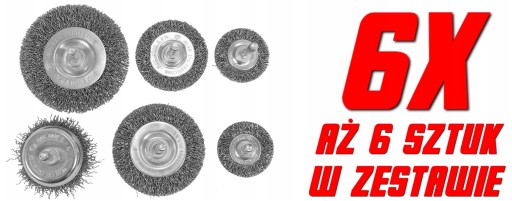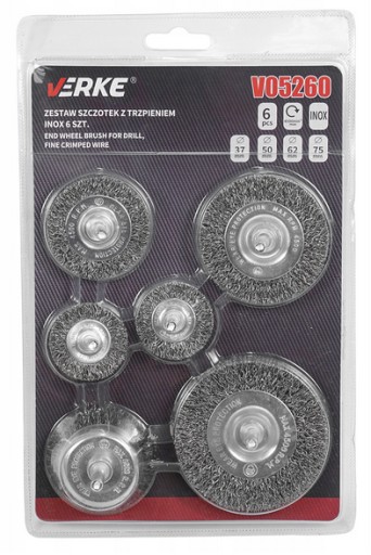 ZESTAW DRUCIANYCH SZCZOTEK DO WIERTARKI Z TRZPIENIEM INOX 6szt VERKE
