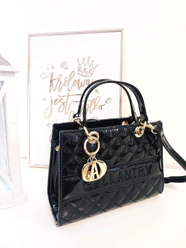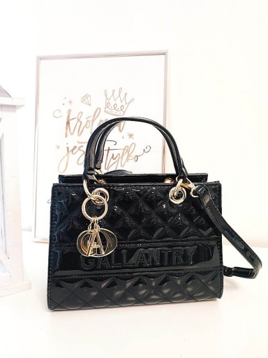 Gallantry Paris mini shopper kuferek czarny lakierowany pikowany