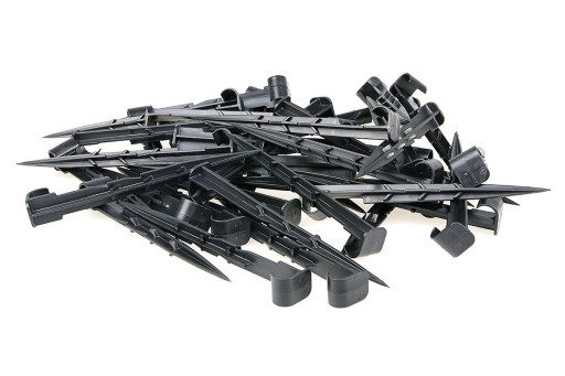 💦 Specjalnie zaprojektowany profil szpilki zapewnia stabilne przytrzymanie przewodów (linii) nawadniających.