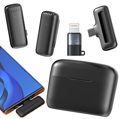 DWA MIKROFONY BEZPRZEWODOWE KRAWATOWY POWERBANK USB C ANDROID IOS LIVE VLOG