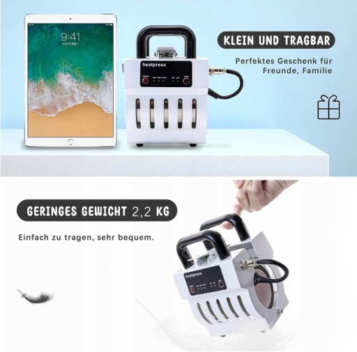 Przenośna i trwała: przenośna prasa do kubków o wadze zaledwie 2,2 kg. Prasa do kubków jest przenośna i łatwa w obsłudze. Powłoka jest wykonana z metalu, jest trwała. Wskazówka: Ta maszyna nadaje się tylko do kubków o pojemności 10 – 15 oz, nadaje się również do wąskich, prostych kubków o średnicy zewnętrznej 2,75-3,35 cala (częściowo drukowane).